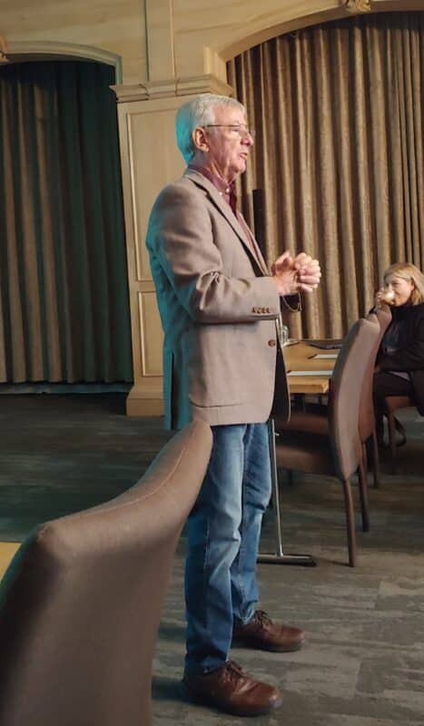 Paul Wagner, Instructor at the Department of Viticulture and Winery Technology and McPherson Distinguished Teacher, presenting a talk on storytelling at Lanzerac Estate.