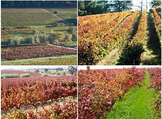 FIGURE 2. Obvious symptoms of leafroll disease in a number of red cultivars of Vitis vinifera (Merlot, Cabernet Sauvignon, Shiraz and Pinotage), in this case autumn 2017, on Vergelegen in a vineyard where infected vines are rogued annually.