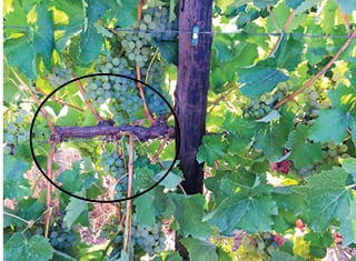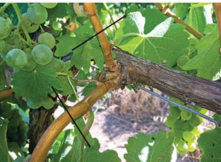 PHOTO 3. Skewed trunks as a result of shoots that were positioned downwards before the grapevines were strong enough.
