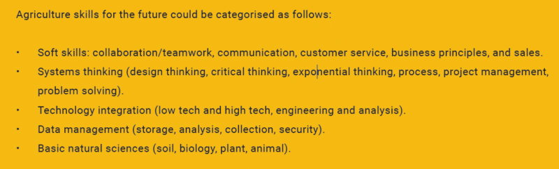 Based on a 2022 report by the Institute for Futures Research (IFR), Albert questions whether students and workers are being adequately prepared for the scenarios it describes. Titled Futures of Agricultural Employment in South Africa 2035 (PDF, 8 Mb), the report identifies the following skills as crucial for a future in agriculture: