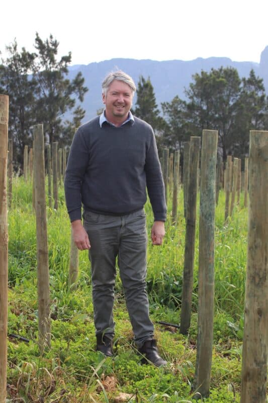 Kriel has planted a ground cover crop of clover and medics around the vines. These should provide optimal coverage in two years’ time. The crop will prevent the need for weedicides and manual under-vine maintenance, and produce a “flower garden for bees”, he says.
